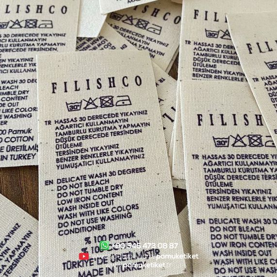 Baskılı pamuk etiket çözümleri; bakım talimatı, beden bilgisi ve marka logosu gibi detayların net şekilde aktarılmasını sağlar. Yüksek kaliteli baskı teknikleri sayesinde yıkamaya karşı dirençlidir.